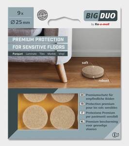 Fix-o-moll Filtpute, filtknott, møbelknott , parkettglider 5mm tykk, med to filtlag, et veldig hardt og sterkt, med ekstremt kraftig lim, det andre filtlaget er mykt og har en høy glideevne. Mykheten forhindrer riper.